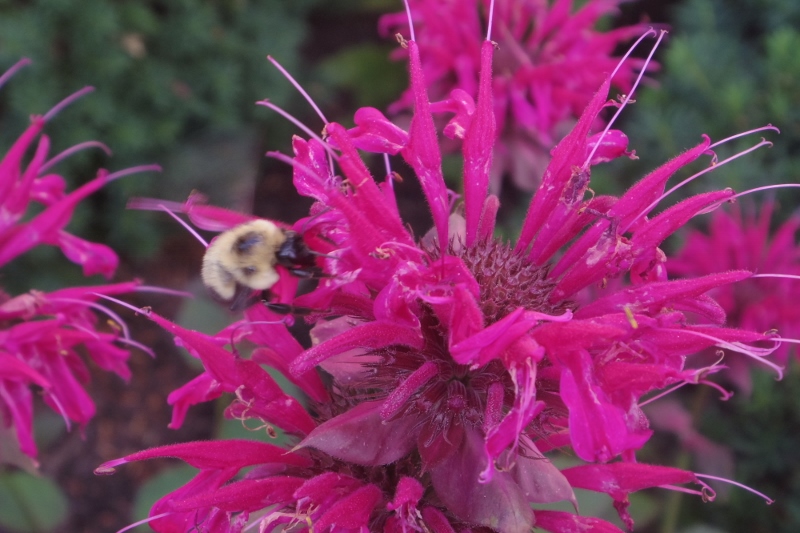 So, my week. Well, it’s been very warm and dry. We are now in a severe drought. The lawns are brown and the ground is hard and cracked. Fortunately, the flowers are still blooming and the bees are still busily pollinating them. I spend much of my time pruning shrubbery, rather than weeding.