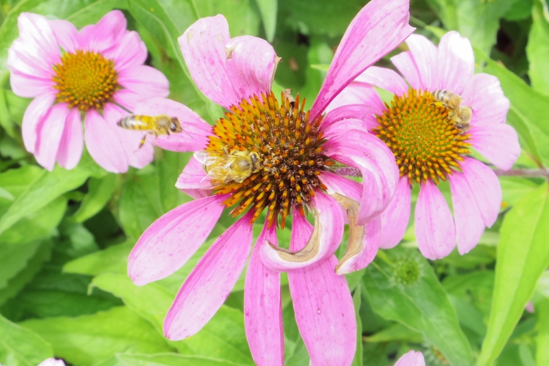 So, my week. Well, it’s been very warm and dry. We are now in a severe drought. The lawns are brown and the ground is hard and cracked. Fortunately, the flowers are still blooming and the bees are still busily pollinating them. I spend much of my time pruning shrubbery, rather than weeding.
