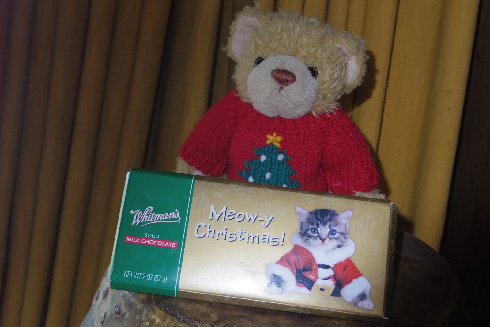 Here are some Christmas greetings from a well-dressed bear and cat. |