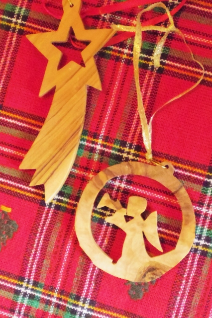 These are ornaments from the Holy Land. They are made from the wood of olive trees. |