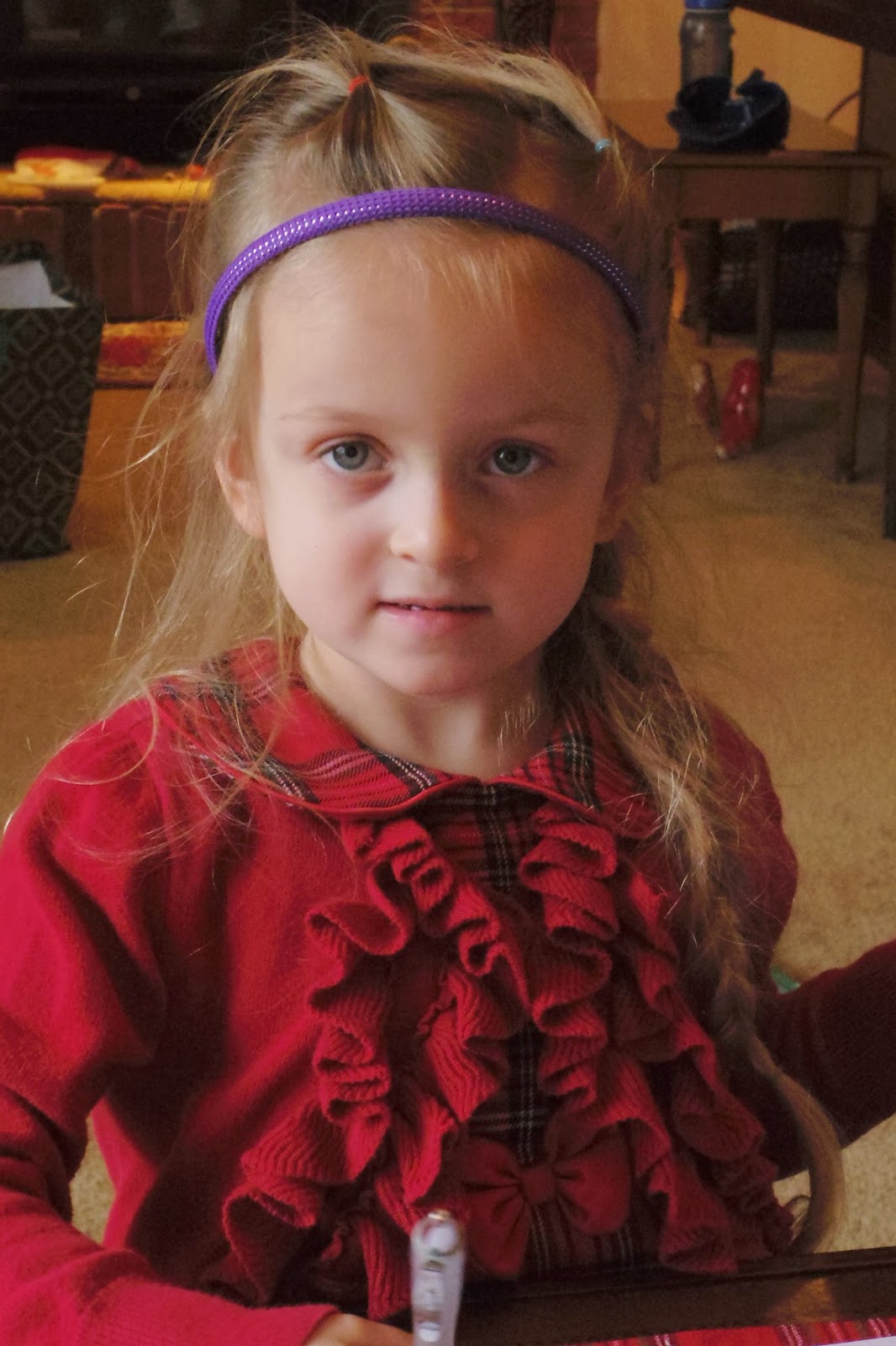 Christmas Day was family time. We got together to exchange gifts, have a delicious meal, and enjoy one another’s company. Here is my great-niece Claire Elisabeth, just one month before her fourth birthday. |