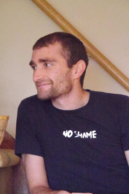 Here is my nephew James, who likes to make the stairs into his chair. |