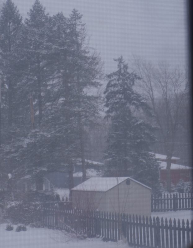 This week’s challenge in the 52 week photography project was to tell a story via the relationship of objects. About a week ago, it seemed that winter was over and that spring was coming very soon. That plan was abruptly canceled. First it got really cold and, then, it started snowing copiously. It has been incredible to watch the snow fly. I looked outside through the window at the back yard and photographed the snowy world. I went outside with my camera to capture the flavor of the snow, the ground, the buildings, and the sky.