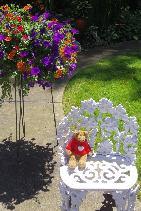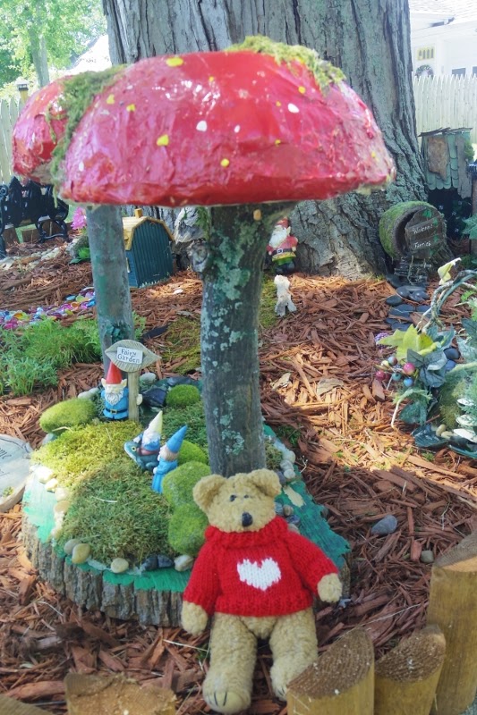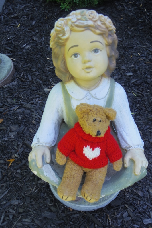 Just then, Sweet Suzie and Fluffy bears found a lovely garden to play in. It was full of statues and flowers and great hostas.