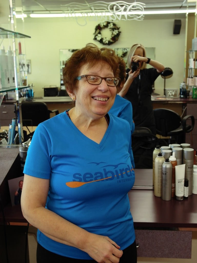 The orange paddle and the blue background are opposites that attract on my shirt.
