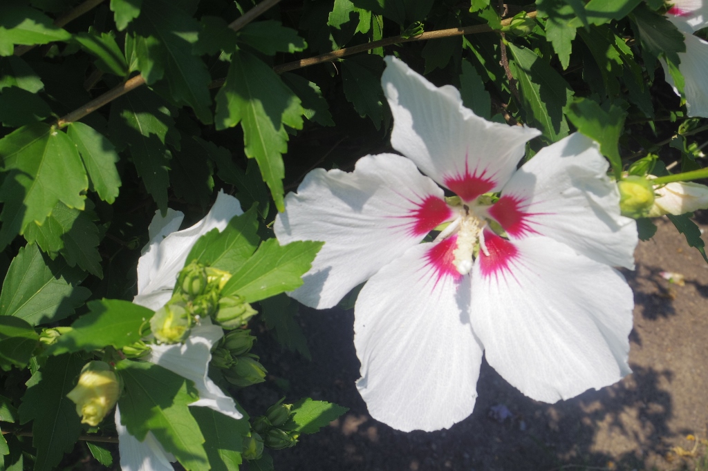 | Small drops of color like drops of magical paint bright Rose of Sharon. |