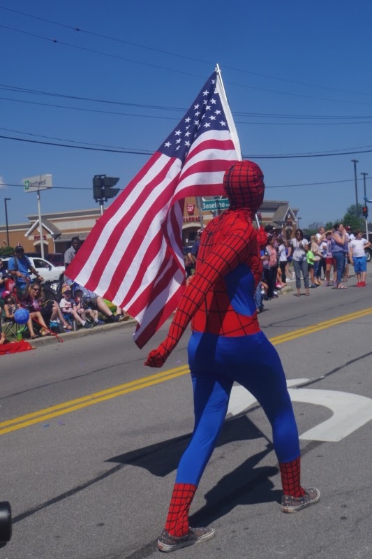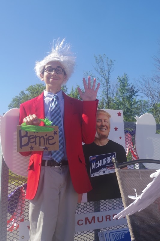I saw dancers, baton twirlers, karatekas (I just looked up that word and found that it means people who practice karate), farmers, horseback riders, Spiderman, cowboys, villains, a damsel in distress, rock stars, political office seekers, “Bernie Sanders,” and the “Gentle Trump.”