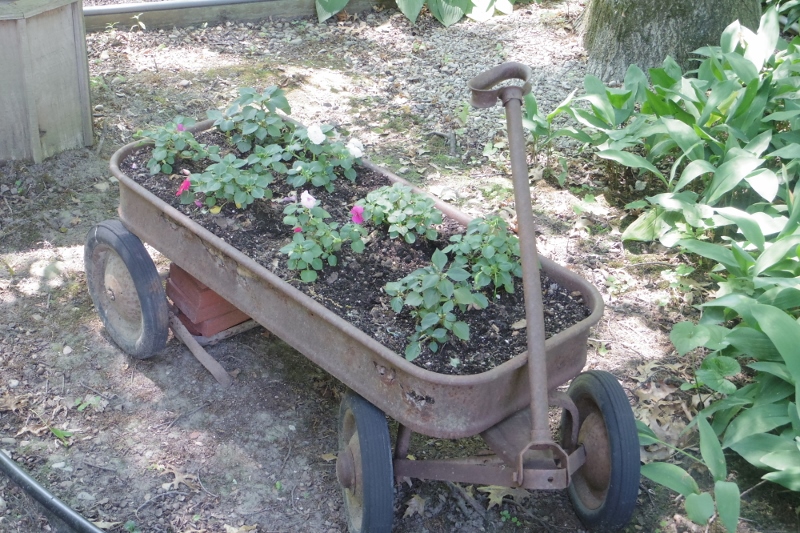 | Old stuff broken-down beds wagons that stopped rolling cracked pottery, and old stained plates new life |