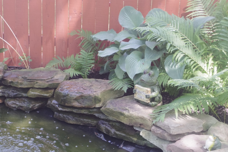| Peaceful A backyard pond maybe filled with goldfish maybe a restful place for frogs joy filled. |