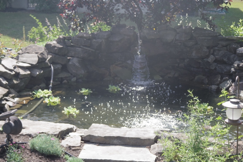 | Peaceful A backyard pond maybe filled with goldfish maybe a restful place for frogs joy filled. |