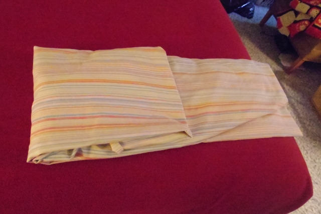You’ve reached the point at which you don’t want to deal with wrinkly wadded up sheets anymore. What do you do? You could force one of the kids to do it with a threat (if you don’t fold up the sheets and make them look nice, you’re not getting dessert) or with a bribe (you’ll get extra chocolate for folding the sheets well). Actually, folding fitted sheets isn’t that hard. So what I did was to take pictures of each step of the project. Here are the steps to folding fitted sheets: |