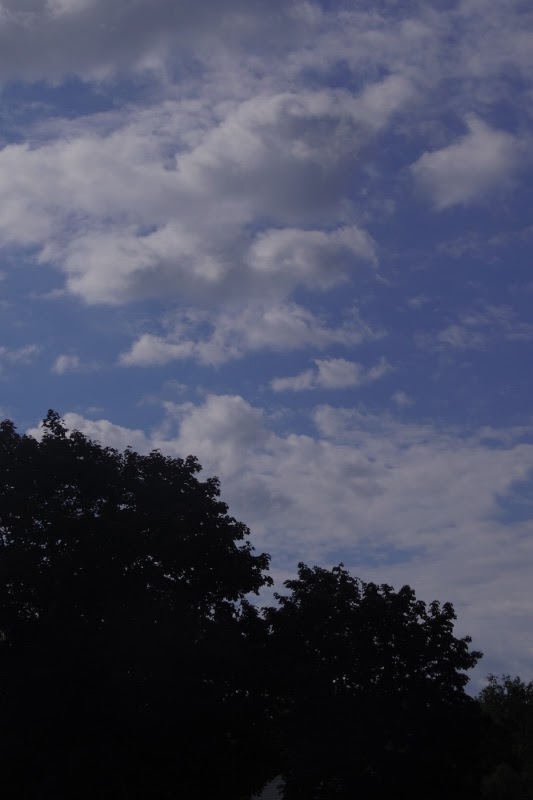 Yesterday and today, I took some pictures of the sky and of the moon, which will be full today. The sky looks different every day. When I was a kid, I liked lying on my back on the ground and watching the movement of the clouds. It was very relaxing. Here are some images of the sky and the moon, with a few “tanka” poems. A tanka is basically a longer version of a haiku. Its five lines are: five syllables, seven syllables, five syllables, seven syllables, and seven syllables.