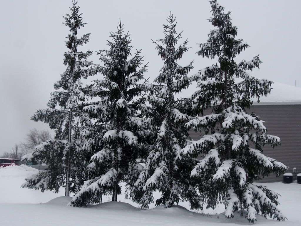 The snow also hides the colors of nature beneath a monochromatic landscape.