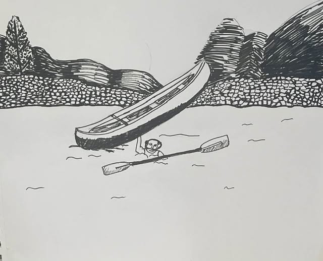 Just as soon as he said those words, Wolf felt very, very wet. In fact, he suddenly realized that he was swimming in a pond, holding up a paddle from a kayak in one hand and a canoe in another.