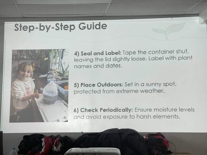 After we had our jugs prepared, we heard a half-hour presentation of the value of native plant species, as well as the benefits of starting our seeds early. It’s a cost effective method of starting plants in a natural type of environment. The jugs, which are left outside, act as a mini greenhouse for the seeds. They can last through snow and ice and rain and all sorts of weather conditions. Eventually, when the weather warms, you will start to see little plants germinate, which is very cool and also very exciting. The first time that I did winter sowing was last year, and when my baby plants began to germinate, I was so happy. It was like a little miracle of nature after a cold winter.