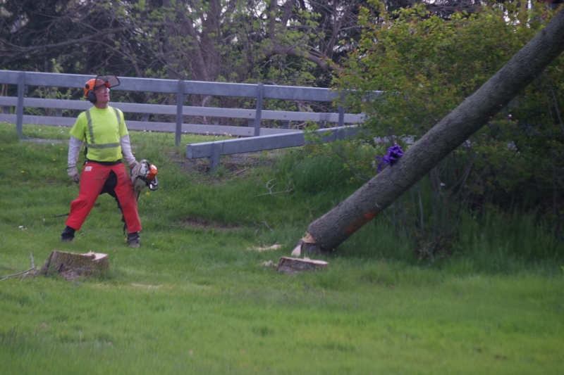 The trees could fall on houses, cars, pedestrians, and power lines.