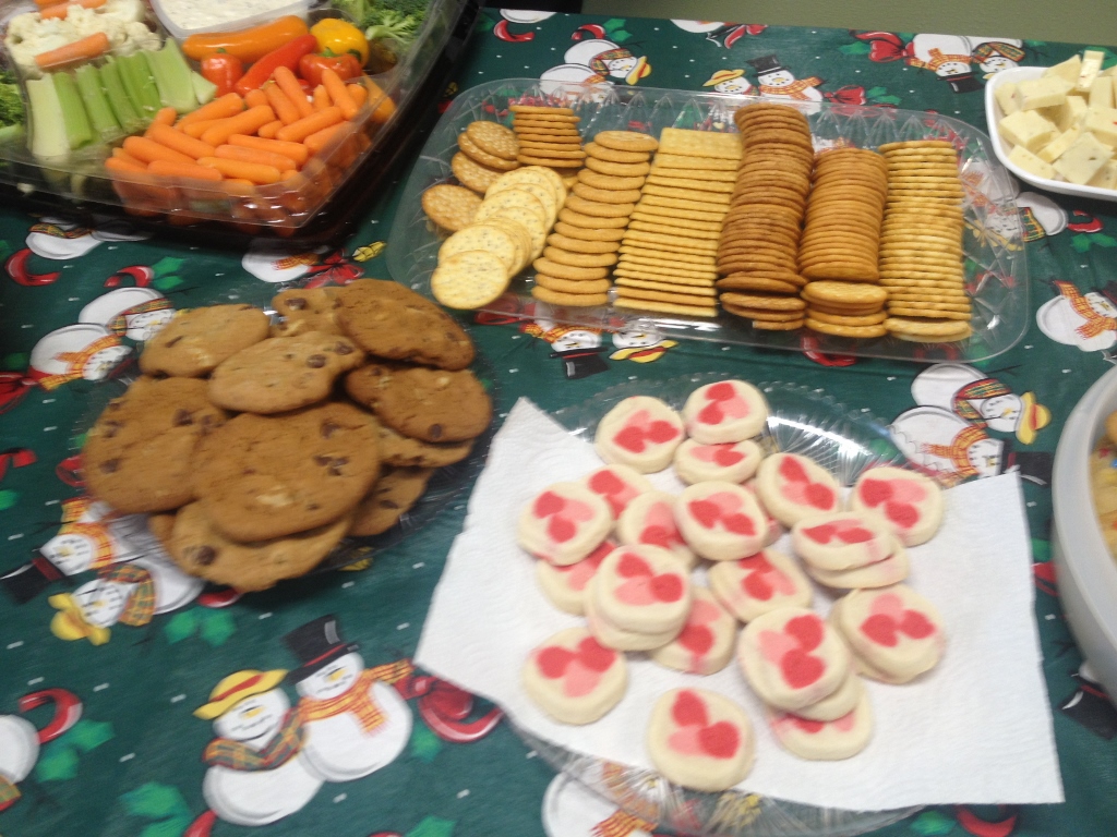 Coffee hour involved putting food on serving plates and placing them on a table. We offered cheese, cracker, pepperoni, cookies, kettle corn, and a veggie tray. Then there was the usual beverage choices: coffee, tea, and juices. The cookies that Dawn and I brought were unusually easy to prepare. We had purchased cookie dough from a high school band fundraiser. You have to keep the cookie dough in the freezer. When the time comes to bake the cookie dough, you just place it on your tray and bake for about 12 to 14 minutes at 350 degrees. Within half an hour, all of my cookies were baked! And that included time for pre-heating the oven!