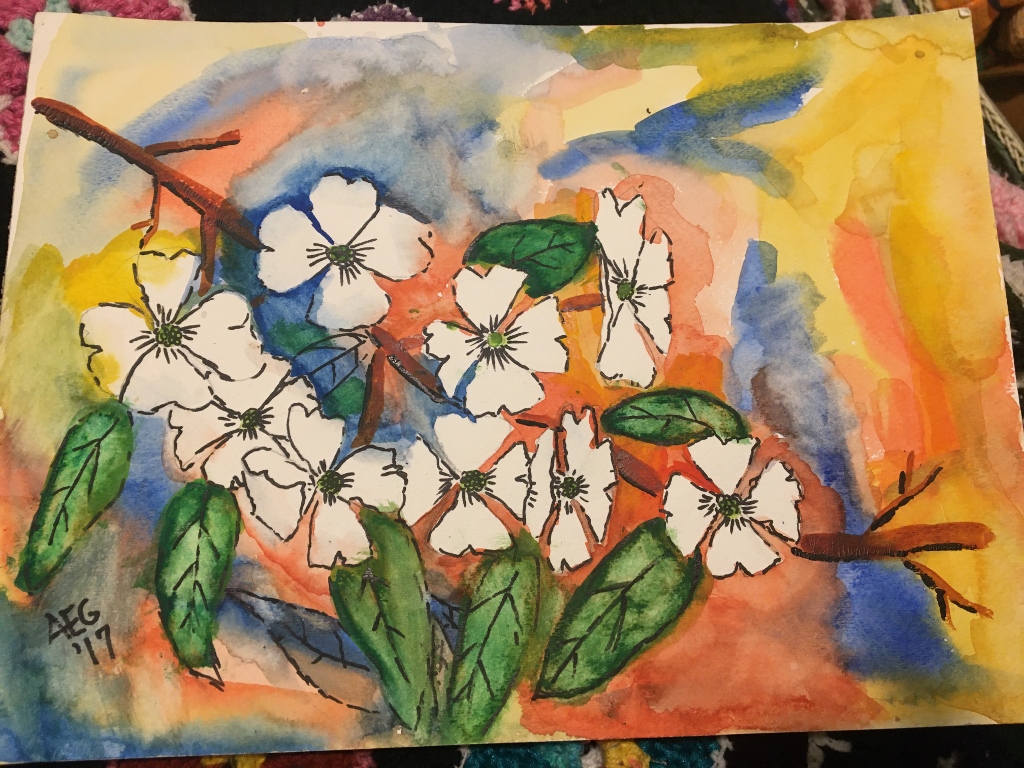 I went to a painting class at Stella Niagara a few years ago (pre-pandemic, of course). I was really attempting a looser style than I am used to but it kind of backfiring. The picture was becoming too loose and it looked like nothing at all. I was feeling very frustrated and I was ready to relocate the painting to the aforementioned trash receptacle when it was suggested that I use a sharpie and define the petals of the flowers and the leaves. I didn’t know how that would help. After all, the painting was ruined. Right? Wrong.