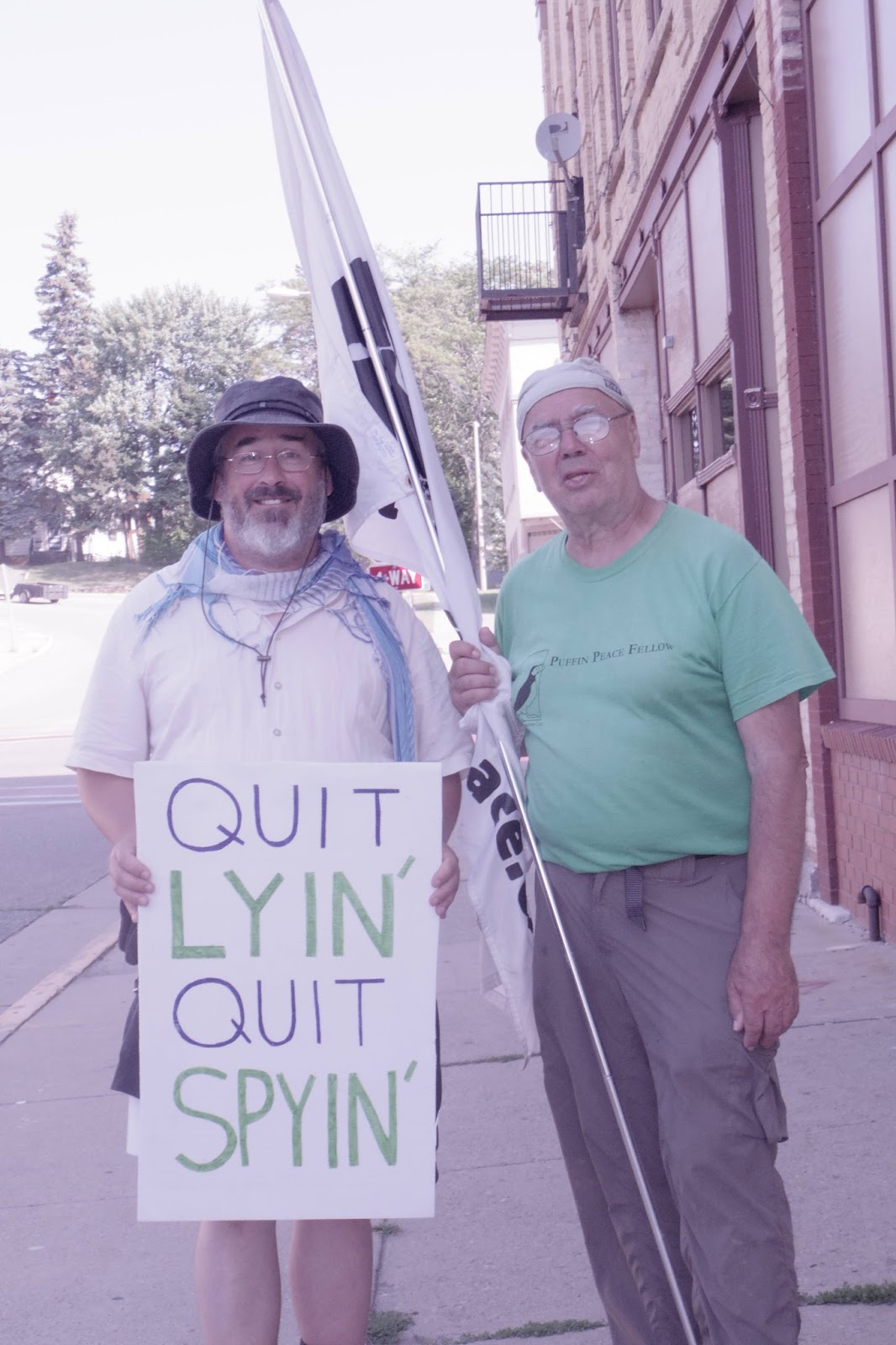 | Brian (on the left) lives in Iowa. He is a farmer and an activist. Jules is a retired bookstore owner from New Jersey. I first met him during the 2010 Walk for a Nuclear Free Future from Salamanca, New York, to New York City. |