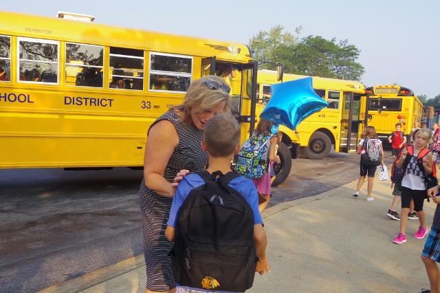 Morning announcements with the principal and a group of fifth graders. The principal welcomed everyone to a new school year. The students took turns reading announcements, and all ended by singing “The Star Spangled Banner.” |