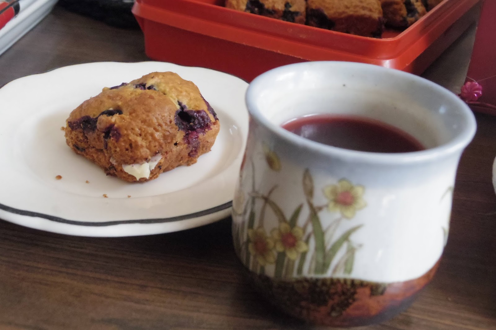 After a long photography session, it was nice to visit Jean and Paul for a tea party. We enjoyed raspberry tea and blueberry scones. |