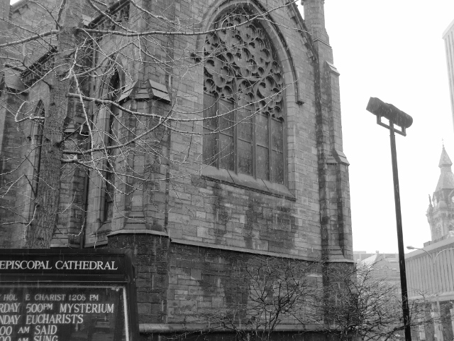 After I left Hyatt’s, I returned via subway to the Church Street station. My next destination was Saint Paul’s Episcopal Cathedral. This cathedral in downtown Buffalo has an interesting and long history. The original structure was a church built in 1817. But, even prior to the church’s construction, Episcopal missionaries had visited the area. The first Episcopal missionary priest to visit was the Rev.