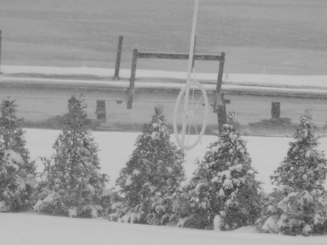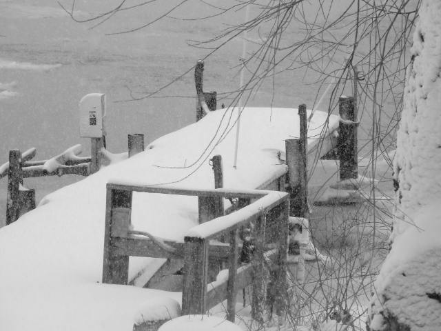 So yesterday, I decided to take a walk to the river, to photograph the snow and the water and the docks. Normally, the walk that I took would be a very easy walk. Yesterday, because of the snow and because of the wind that occasionally kicked up, this walk became much more challenging. Nevertheless, I started walking. It was interesting to watch the snowplows at work, clearing out driveways.