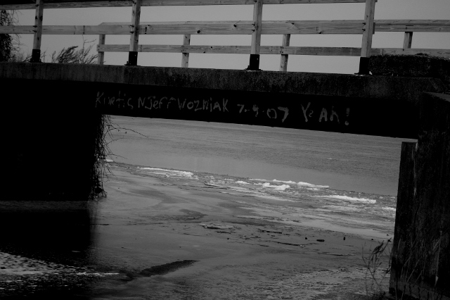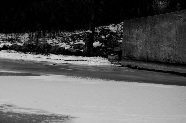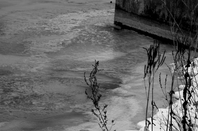 This is the partially frozen marsh. |