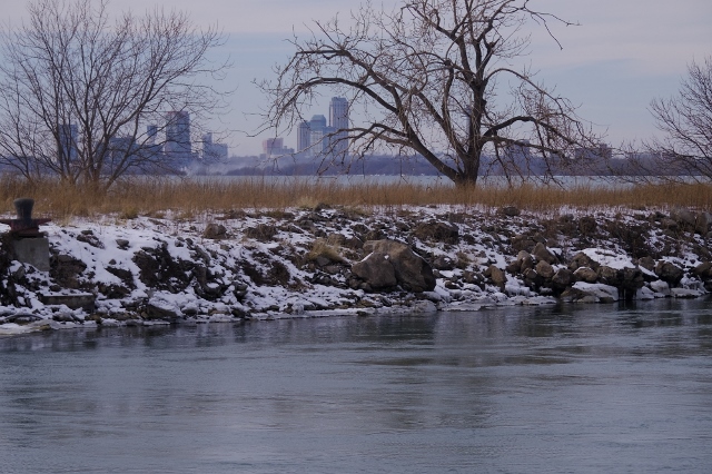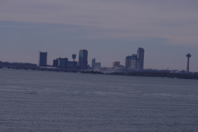I’m not sure if the Niagara River completely freezes over in the winter because the water moves so fast. But, for sure, there is ice in the river. |