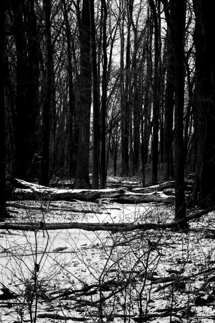 I walk on the snow-covered trail in the forest. I look at everything around me. I see the tracks that the deer left but, on this day, I see no animals. |