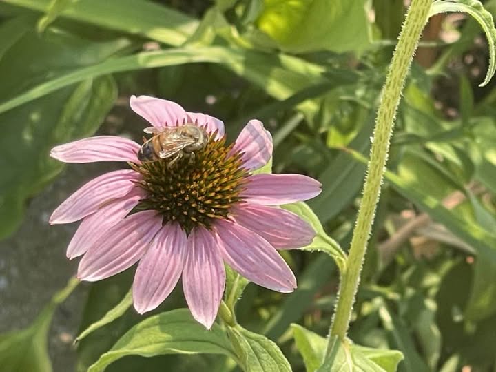 What a lovely cone flower.I am a little afraid of bees.I got stung twice.