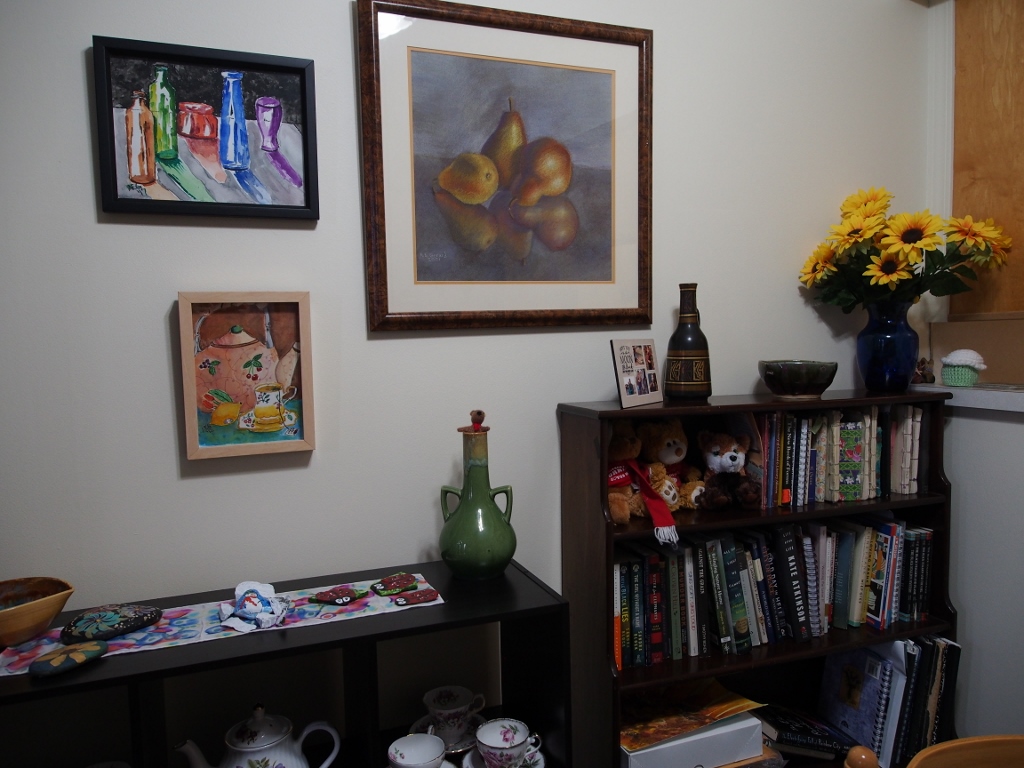 Alice, what fun reading about your new place, and how you've expressed and displayed your artistry throughout! (Btw why did you move?) I know an art appraiser who uses exclusively neutrals for her walls and floors, because the art pops relative to the background. So I think your neutrals are great. I also love your paintings! My husband and I downsized before it was popular, and we are always looking at what we can donate or mail to the grandkids :-). For us, it's an ongoing process of creating the most space in a small space. Alice, you rock!