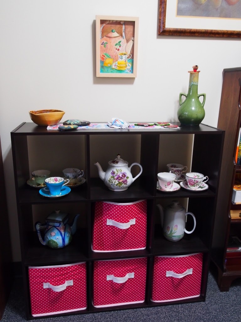 And, because I am Alice, the theme also includes tea parties. I have an eclectic set of nonmatching bone china teacups that I purchased at various garage sales.